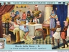 La storia prosegue con la figurina n.4, Birreria del 17° secolo, dove si racconta che “Senza risalire fino a Rabelais, è pur accertato che i monaci furono sempre giusti estimatori delle buone bibite. Ad essi devesi l’invenzione dello sciampagna e di non pochi prelibati liquori. In Germania si fecero birrai, e parecchie grandi marche moderne vanno superbe della loro origine monacale. Fu senza dubbio in una birreria claustrale che ebbe luogo la prima aggiunta del luppolo al malto (…)”. La scelta della scena “di genere”, ispirata più a stampe popolari che a maestri come Bruegel e Bosch, ritorna anche nella figurina successiva Vecchia birreria di corte – Hofbrauhaus – a Monaco, verso il 1830 in cui “(…) la nostra vignetta riproduce il cortile di quella famosa birreria poco dopo la sua apertura; come vedesi, fin da quell’epoca essa aveva una buona clientela”. Sebbene le figurine Liebig non vennero mai realizzate per il mercato inglese, l’ultima immagine si intitola Birreria londinese al 18° secolo, e dal retro apprendiamo che “(…) In Inghilterra si fabbricano parecchie qualità di birra; generalmente sono preferite le birre forti note sotto il nome di “porter”. Le birre inglesi sono preparate col processo dell’”alta fermentazione” e contengono, oltre i soliti ingredienti, una certa dose di zucchero: desse si conservano più a lungo delle altre (…)”, quasi a suggerire che il self control insito nel popolo britannico fa sì che il consumo, a differenza di quanto accade con lo smodato popolo tedesco, sia morigerato. Ed infatti anche l’illustrazione risulta statica e meno pittoresca delle altre, con la raffigurazione di lavoratori coscienziosi e compassati.
