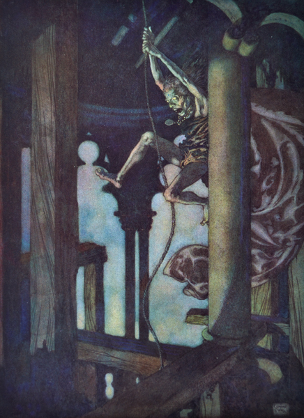 Eppure il più straordinario contributo l’ha portato Edmond Dulac con una delle sue opere meno note, forse perchè non traduce in immagini i celebri racconti di Poe, bensì le poesie, in una raccolta intitolata The Bells & Other Poems.